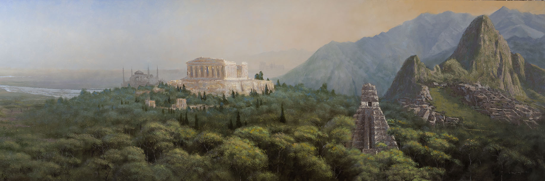 This collector had visited a lot of these places so he wanted the painting to celebrate a lot of different monuments and significant points of interest in the world. So to me, the painting was about humanity, and about society and culture.