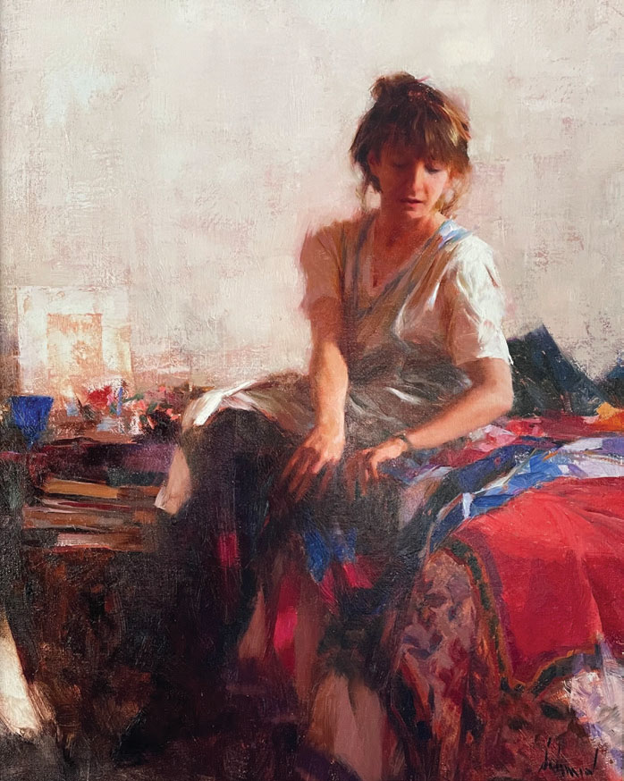 In 2000, Richard Ormond, grand-nephew of John Singer Sargent and the premier authority on his ancestor’s art, presented Schmid with the American Society of Portrait Artists’ John Singer Sargent Medal. Ormond has written, “The principles of painting from life have been well mastered by Richard. He can translate what he sees into pictorial form with great panache. His fluent and incisive brushwork brings to life his chosen subjects with veracity and immediacy. You feel you are there in the picture, so convincingly alive is the space, so tactile the surfaces. Wizardry with the brush can sometimes rebound on the head of the painter. Success is attributed to technical facility, not to deeper artistic impulses…. Richard knows better than anyone that mastery of the medium is not the end of the story, though without it an artist is lost. Perception, feeling, imagination, these are the things that stamp a work of art and open the mind and soul of the spectator.”
